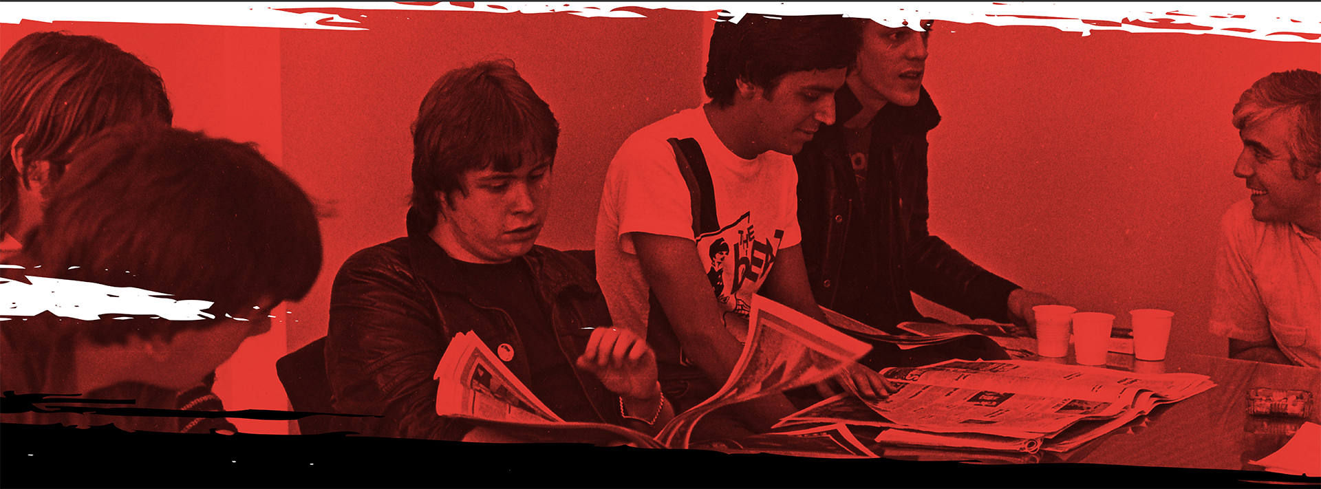 No sooner had we been seated than a food fight began, a not entirely unexpected side-effect of the punk period. The main problem was that being a flash boy I was wearing some spivvy waistcoat recently acquired on an all-expenses-paid American trip. Henceforth I became one of the first journos to dress down, which explains me usually being photographed in denim or leather.