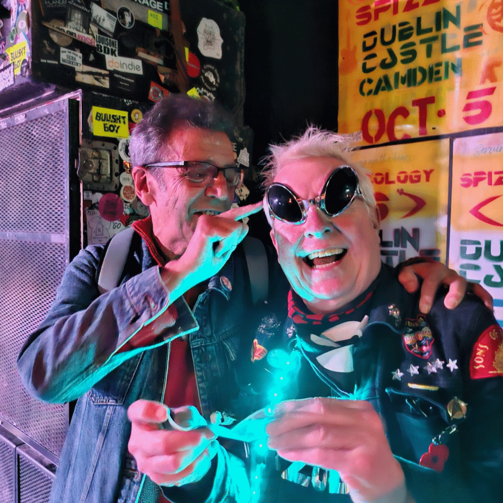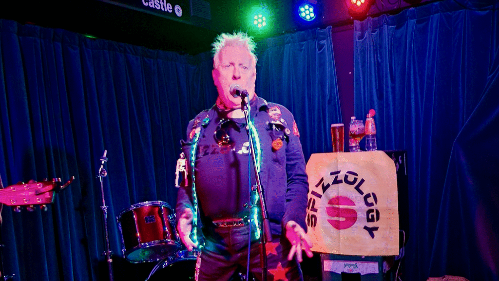 Whereas Spizz Energi gigs, everywhere from old dance halls to outdoor festivals, have seen him front random-looking groups of individuals stepping on and offstage for different songs, Spizzology is a more pared down club-friendly affair. In fact it’s just him and guitarist Luca Comencini performing acoustic versions of the singer’s back catalogue. At the famous Dublin Castle in London’s Camden Town this proved to be quite a revelation. Luca’s minimal every-note-counts finger-work is an inspired vehicle for Spizz’s expressive voice, the space offering a welcome, uncluttered change from the bigger band.