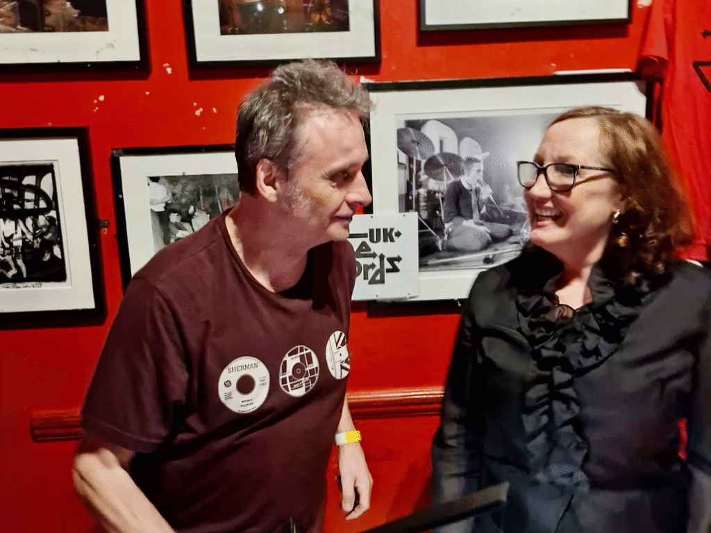 Which means the current tour – playing a re-imagined ‘So Far Away‘ – is part of that process. Too soon for happy endings, perhaps, but there have been many happy days and nights to remember. Apart from the sold-out shows replete with original fans and their children to make sure they make it home, there was Chris’s wedding to Sandra around a decade ago. Yes, I was there, but these days I usually see the wife, to quote ‘The British Way of Life’, on some venue’s merch stand, cheerfully flogging their colourfully handsome array of Chords UK shirts and discs. That’s Sandra on the cover of …But Then Again, serving his lordship tea in their Sarf London flat.